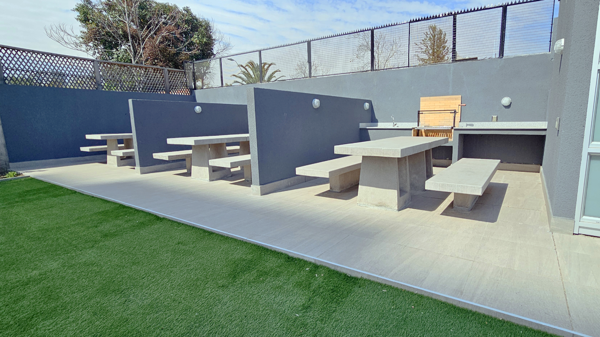 Hall de acceso, salón gourmet, Piscina, Bicicleteros, Quincho, Gimnasio, Patio exterior, Áreas verdes interiores, Lavandería