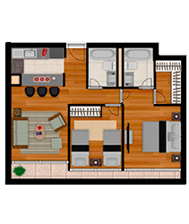 2 dormitorios | 2 baños | 62.96 m².